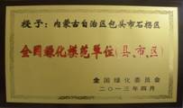 全国绿化委员会对在绿化事业中作出突出成绩的城市(区)、县(市、区)单位和个人予以表彰,石拐区获评绿化评比最高奖项“全国绿化模范单位”荣誉。